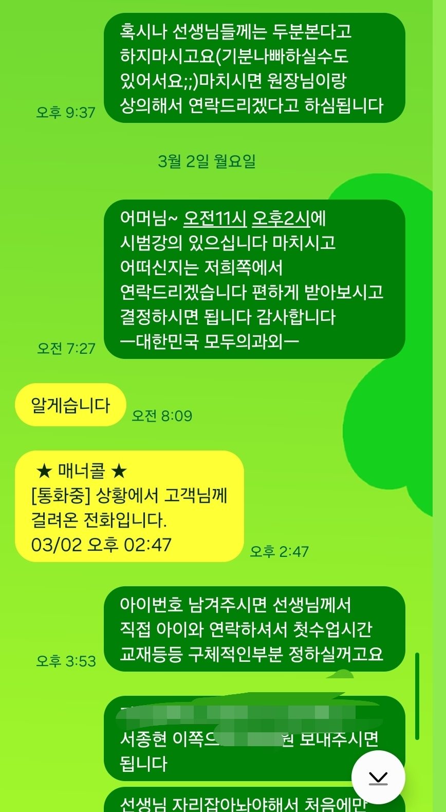 2. 개인정보 : 상담글에 대한 상담답변 처리 및 응대시 활용