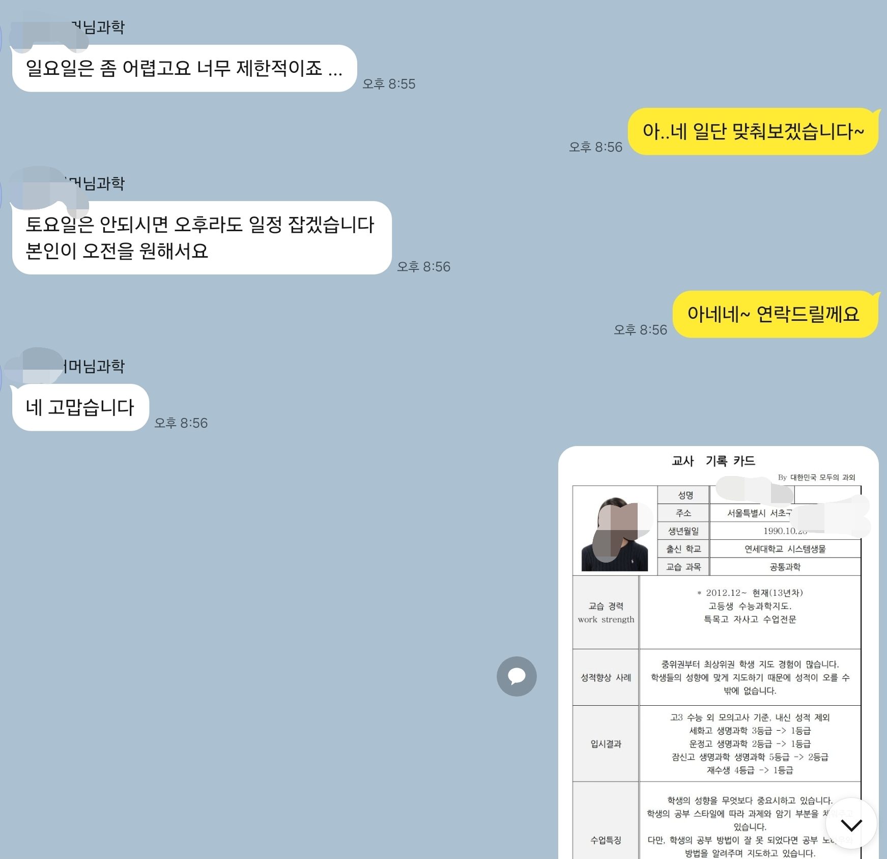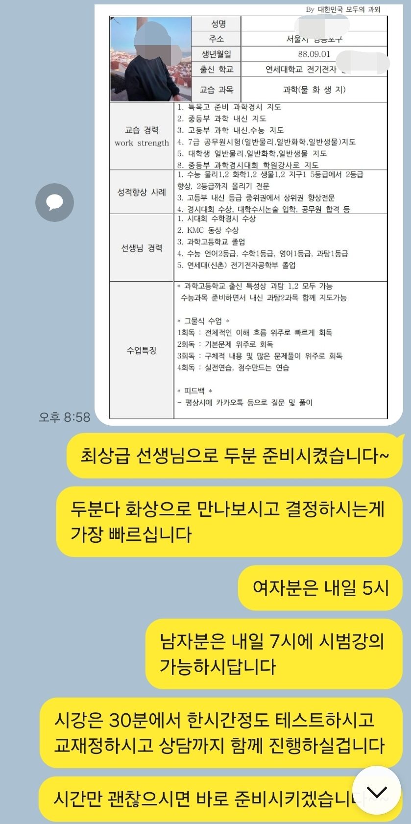 * 수집하는 개인정보의 항목 *- 개인식별정보: 이름, 학력,지역, 출신학교, 연락처 등 프로필내용