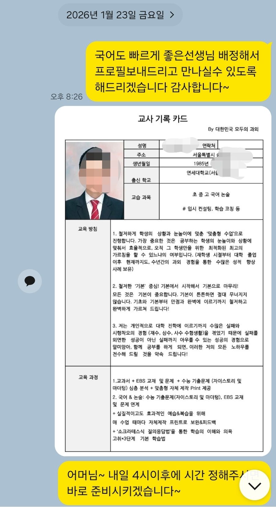 강동구고3국어과외체결(1.31일자)세분보시고 치열하게 고르셨습니다 수능까지 책임져 주실겁니다~ – 모두의 과외